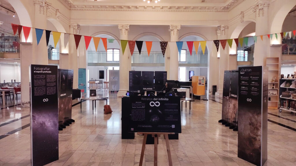 Retratos del infinito se presenta como exposición presencial en el Hall central de la Biblioteca Regional de Antofagasta, Chile (Google Maps).